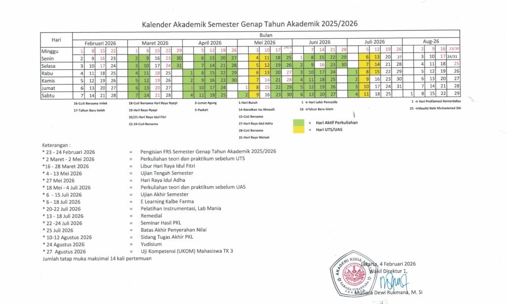 Kalender Akademik Semester Genap Th Akd 2025/2026